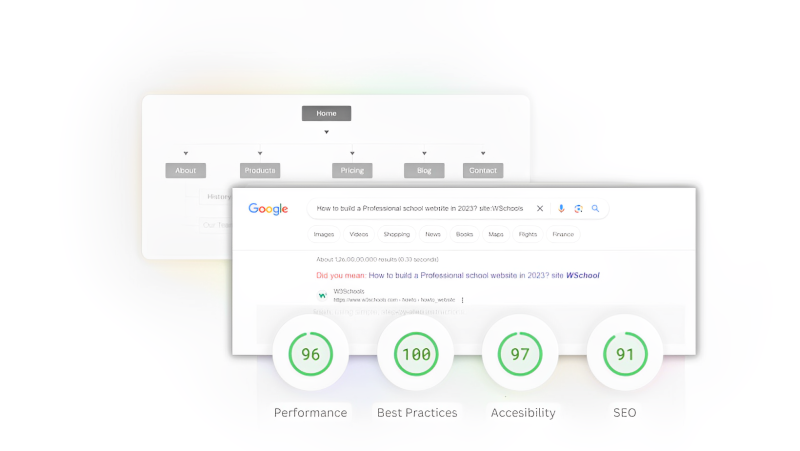 WSchools.so takes care of all the SEO aspects for your website. Get ready to transform your School into Digital Reality.